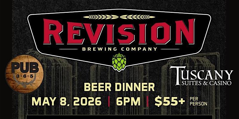 Join us at Pub 365 on May 8, 2026 at 6:00 PM (Pacific Time) for a laid-back evening featuring awesome brews from Revision Brewing Company. Enjoy a tasty beer dinner pairing that’s perfect for beer lovers looking to chill, chat, and savor some unique flavors. Don’t miss out on this fun night of great drinks and good vibes!