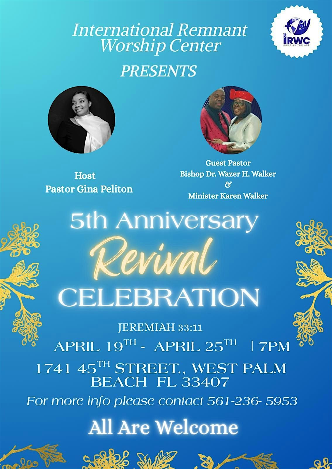 We invite you to join us for a powerful Week of Revival and Anniversary Celebration as we come together to honor God’s faithfulness and seek a fresh move of His Spirit. Throughout the week, there will be dynamic preaching, uplifting worship, and opportunities for fellowship as believers gather to be renewed, encouraged, and strengthened in their faith. Each service will feature anointed guest ministers bringing the Word, creating an atmosphere where lives can be transformed and hearts can be refreshed. This special week is not only a time of celebration for our church family, but also a chance for the community to experience hope, restoration, and the presence of God. Come expecting powerful worship, life-changing messages, and a time of spiritual renewal as we celebrate what God has done and look forward to what He will continue to do. All are welcome!