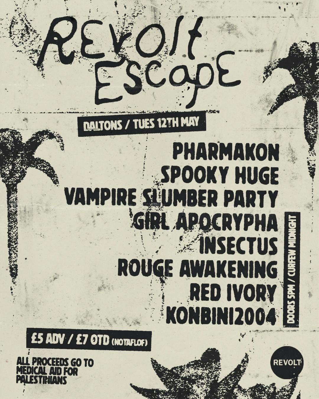 REVOLT are hosting a special mini all-dayer, Alt Escape show at Brighton, Daltons, to raise crucial funds for Medical Aid for Palestinians, with this incredible lineup: