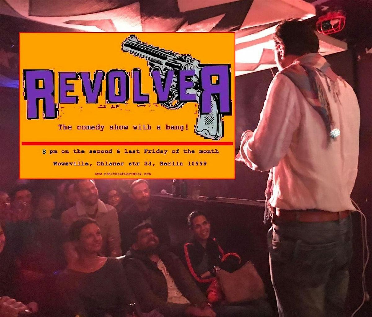 Revolver is an original Berlin comedy mic. No gimmicks, no games, no donation scam. We have no branches, please be aware of cheap imitations. Revolver happens every Second and Last Friday of the month in Kreuzberg, Berlin.