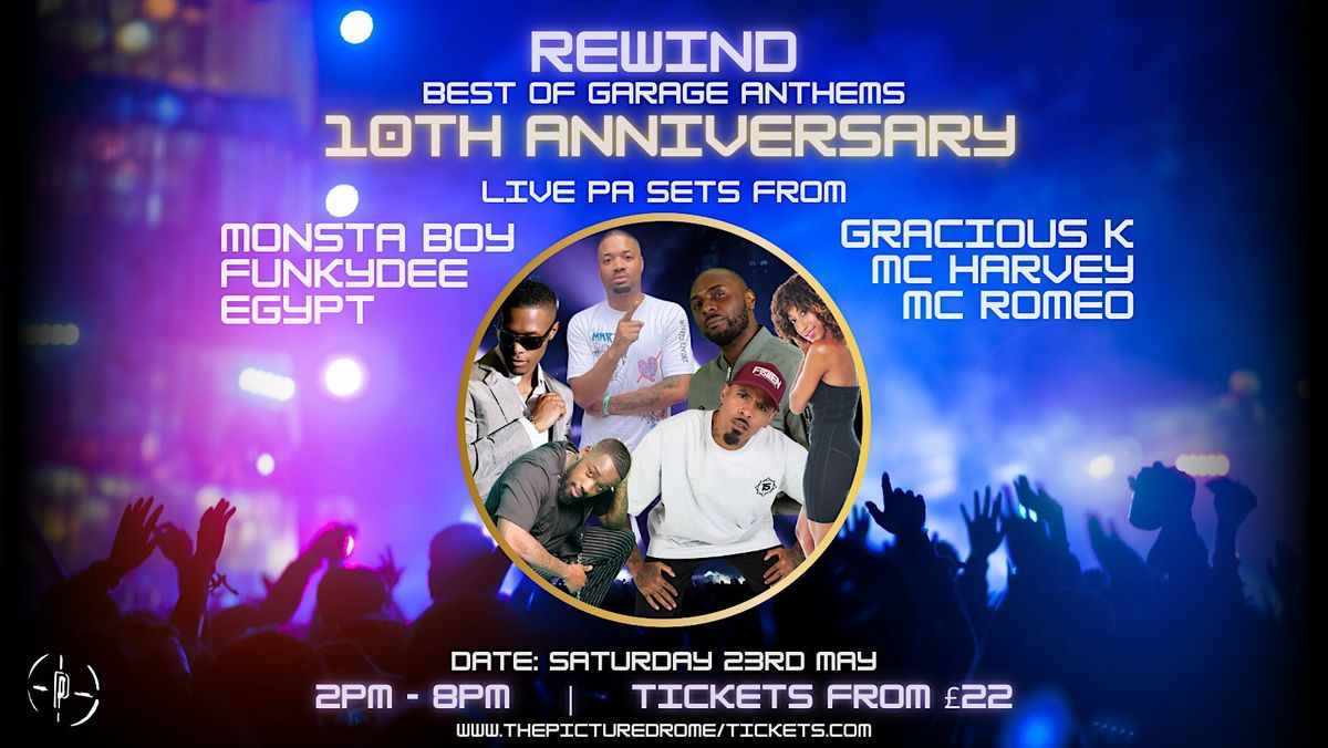Rewind 10 year anniversary. Bringingthe best of garage anthems to Northampton. 6 live performers.