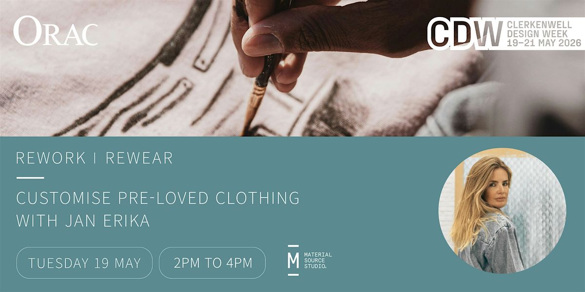 Join us during Clerkenwell Design Week for Rework | Rewear, a hands-on, creatively driven workshop led by British artist Jan Erika. Designed with the design community in mind, this session invites you to rethink waste, materials, and personal expression through the lens of fashion.