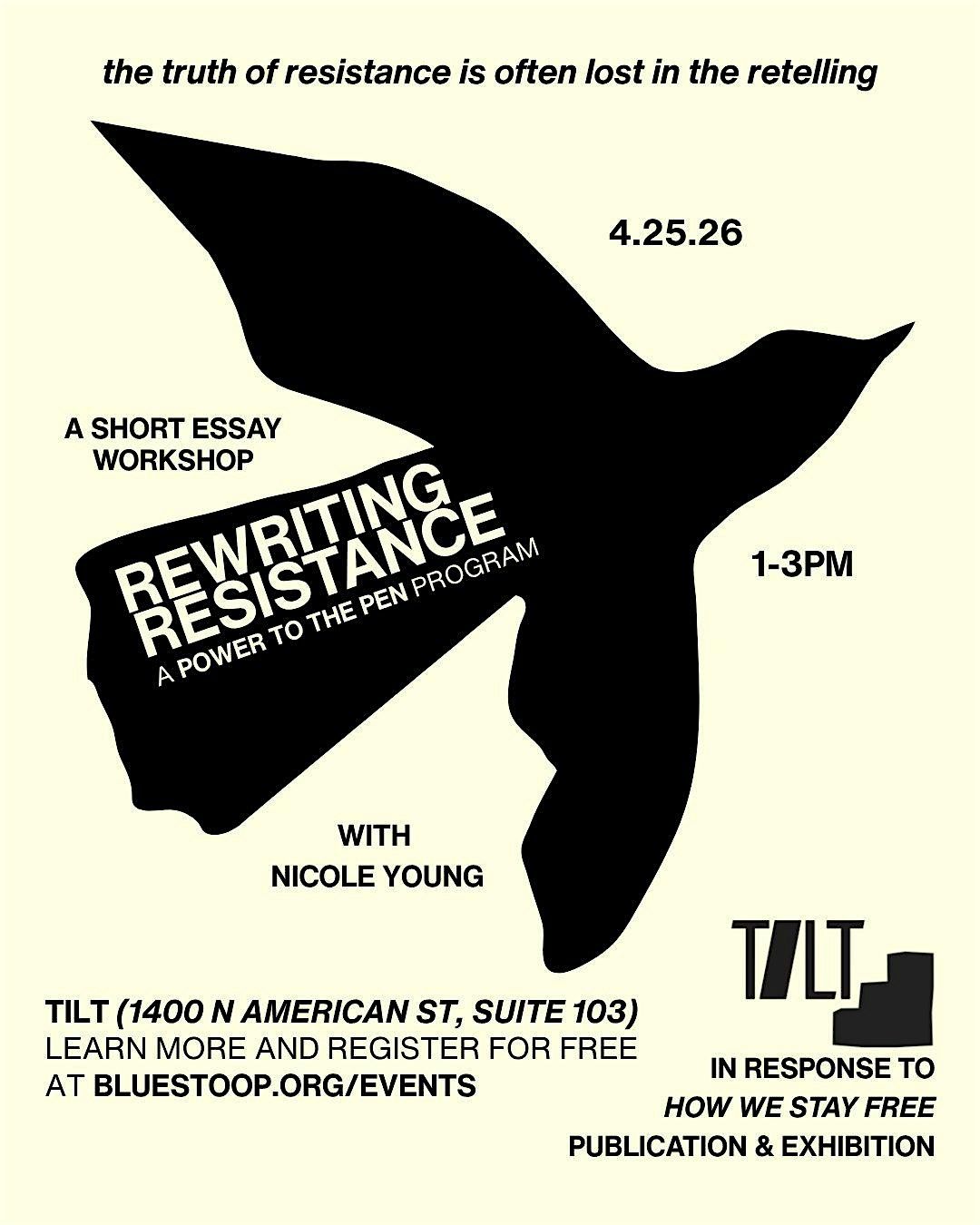 This Power to the Pen program is presented by Blue Stoop in collaboration with TILT Institute of the Contemporary Image, in response to their “How We Stay Free” exhibition and publication of by Fajr Muhammad and Christopher Rogers. To learn more and visit the exhibition (on-view April 9 - June 27, 2026), visit their website here.