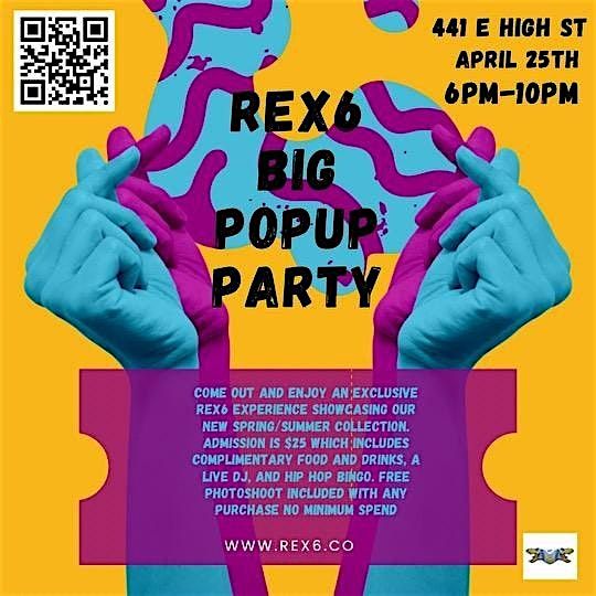 Get ready for an epic night at 441 High St! Join us on Saturday, April 25, 2026 at 6:00 PM (ET) - 10:00 PM (ET) for the REX6 BIG POPUP PARTY.