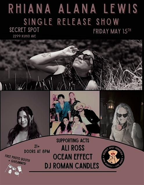 Rhiana Alana Lewis Single Release Show @ Secret Spot with guests Ali Ross, Ocean Effect, and DJ Roman Candles 21+