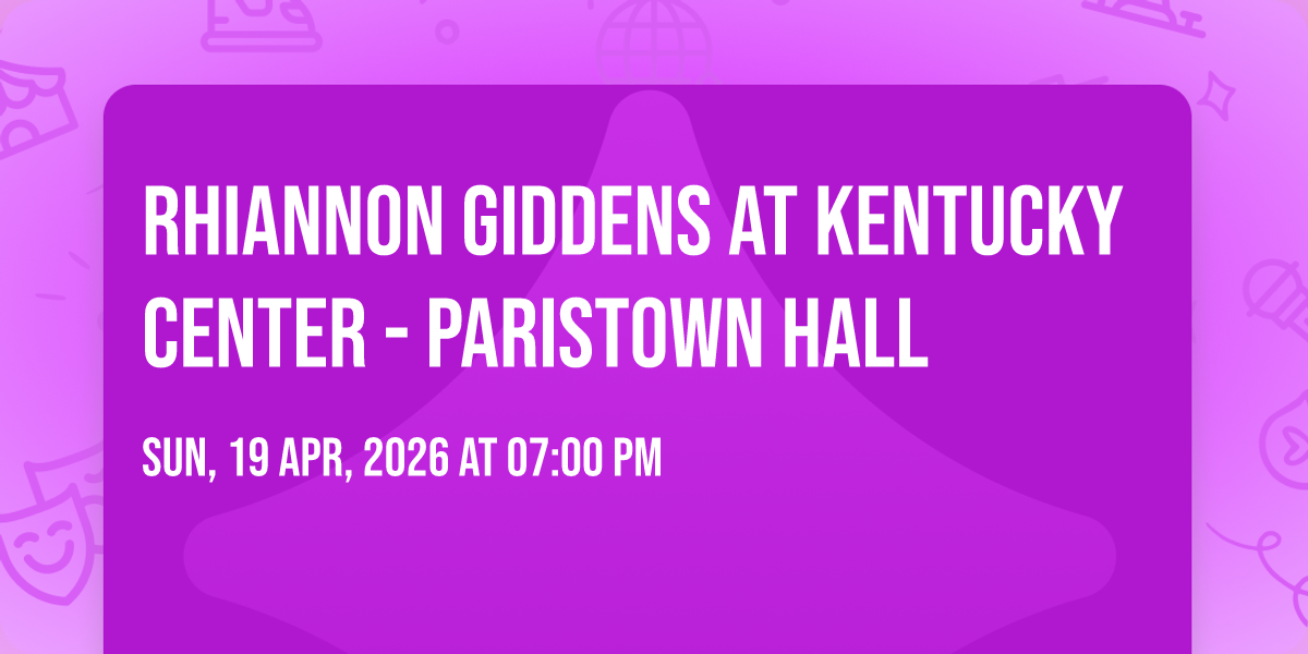 🌟 Journey into wonder at Rhiannon Giddens at Kentucky Center - Paristown Hall, where extraordinary experiences await around every corner! 🏛️ Set against the backdrop of Kentucky Center - Paristown Hall in dynamic Louisville, KY, this event promises to exceed all expectations. 📅 Join us on April 19th, 2026 at 07:00 PM for a celebration that combines innovation, entertainment, and community spirit in perfect harmony. ✨ There will be an atmosphere where memories are made and stories come alive, ensuring every guest experiences something truly remarkable. 🎊 This is more than just an event; it's a journey into the extraordinary!