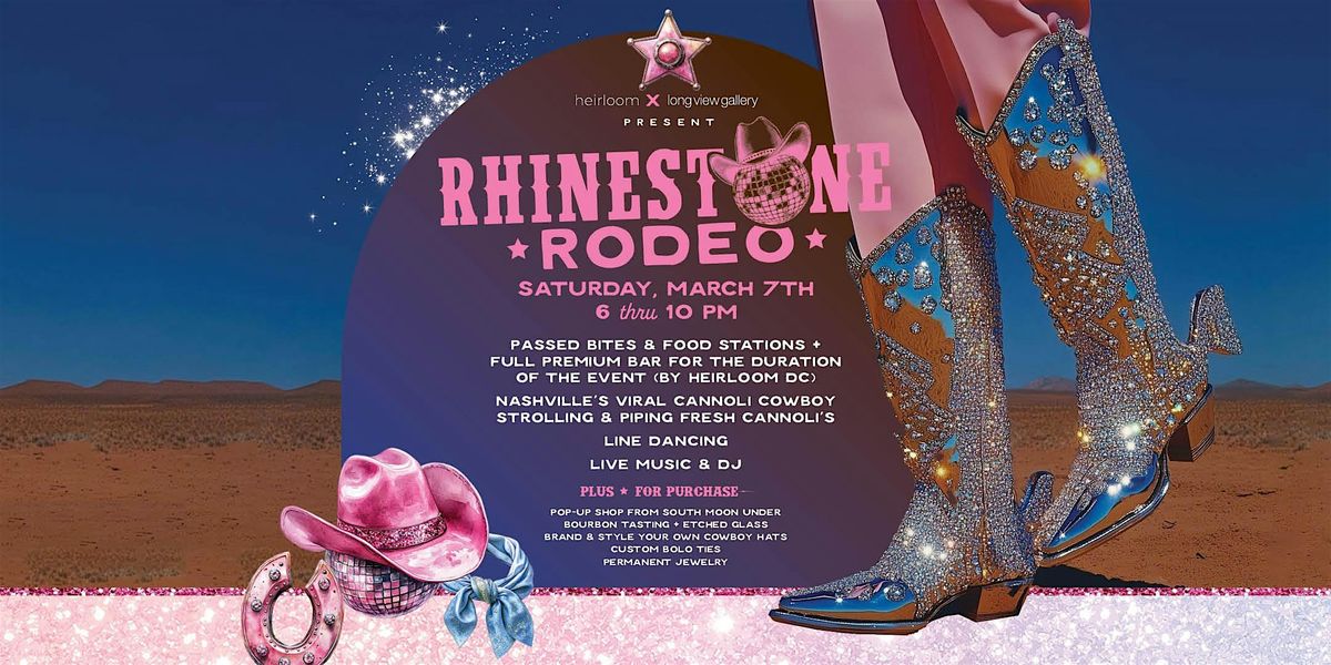 Rhinestone Rodeo is Long View Gallery’s Saturday night takeover—where Modern Art, Nashville energy, and DC nightlife collide in a swirl of yee-haws, rhinestones, and main-character moments.