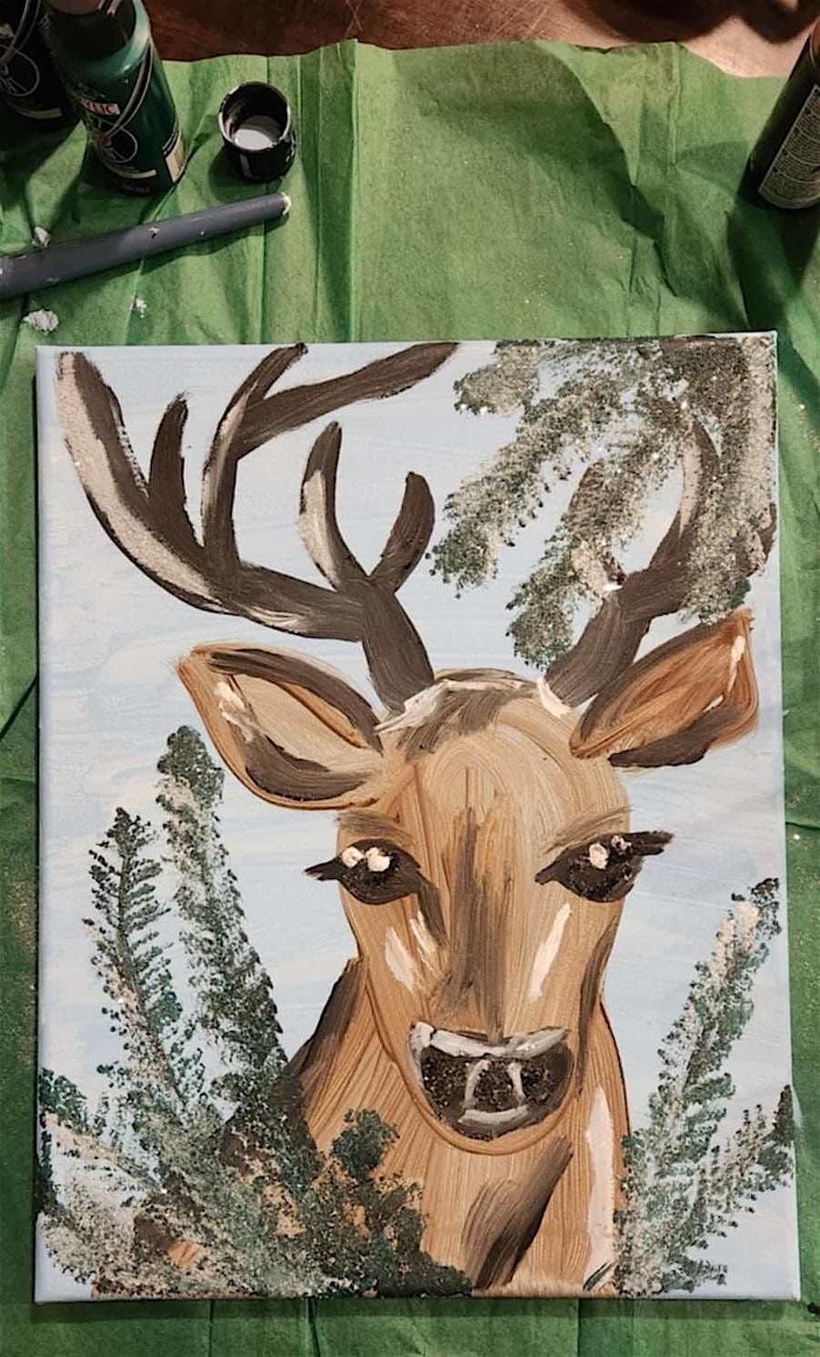 Come kick your boots up after the holiday madness and enjoy our Rhinestones & Reindeer Paint and Sip! Tickets include: