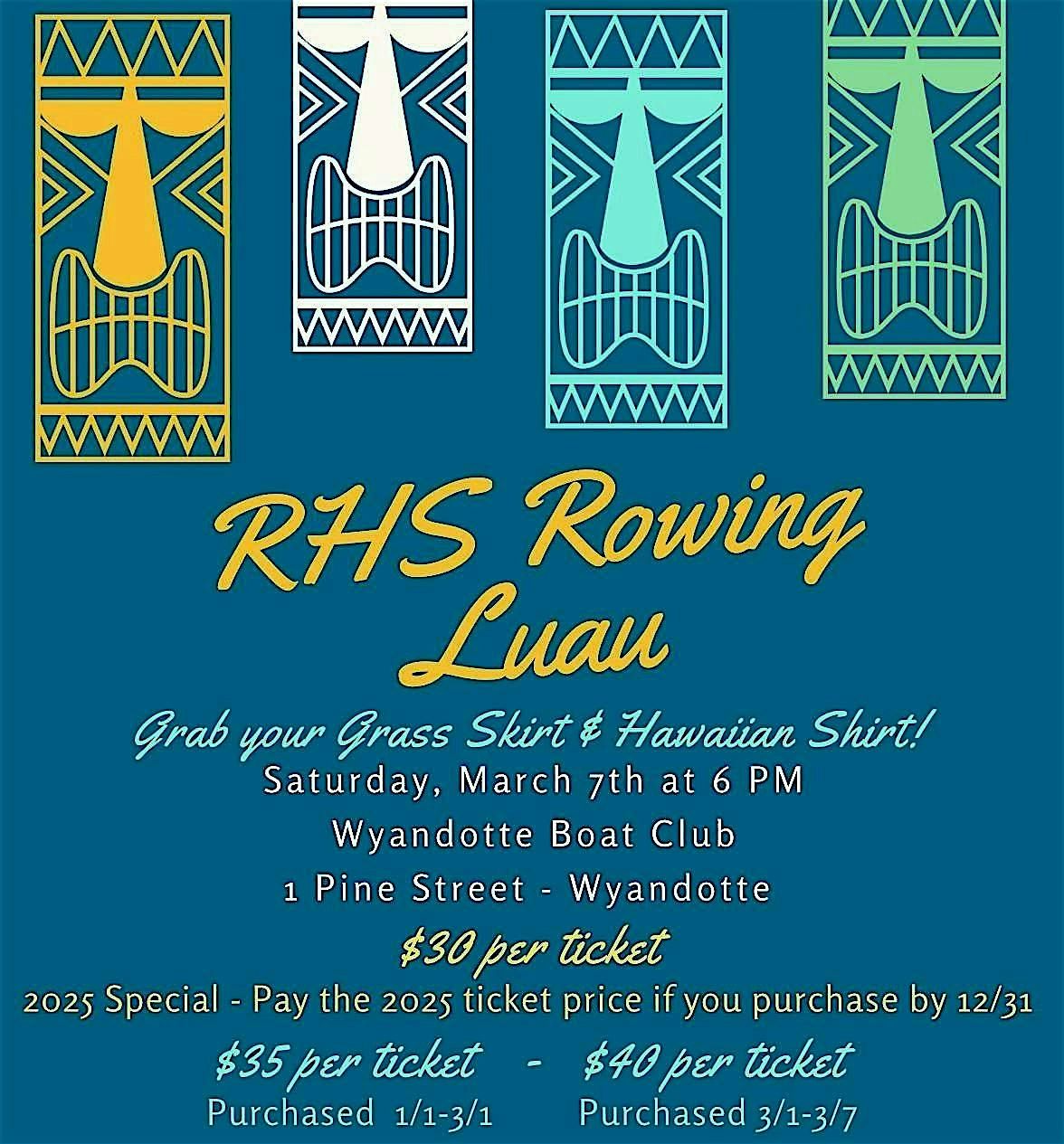 Get ready for an epic day at the RHS Rowing Luau! This in-person event is all about fun, friends, and good vibes. Whether you're a former rowing champ, parent or a supporter, come chill with us, enjoy some tropical tunes, and make memories that’ll last. Don't miss out on the sun, smiles, and all the luau action! Come support a great group of athletes!