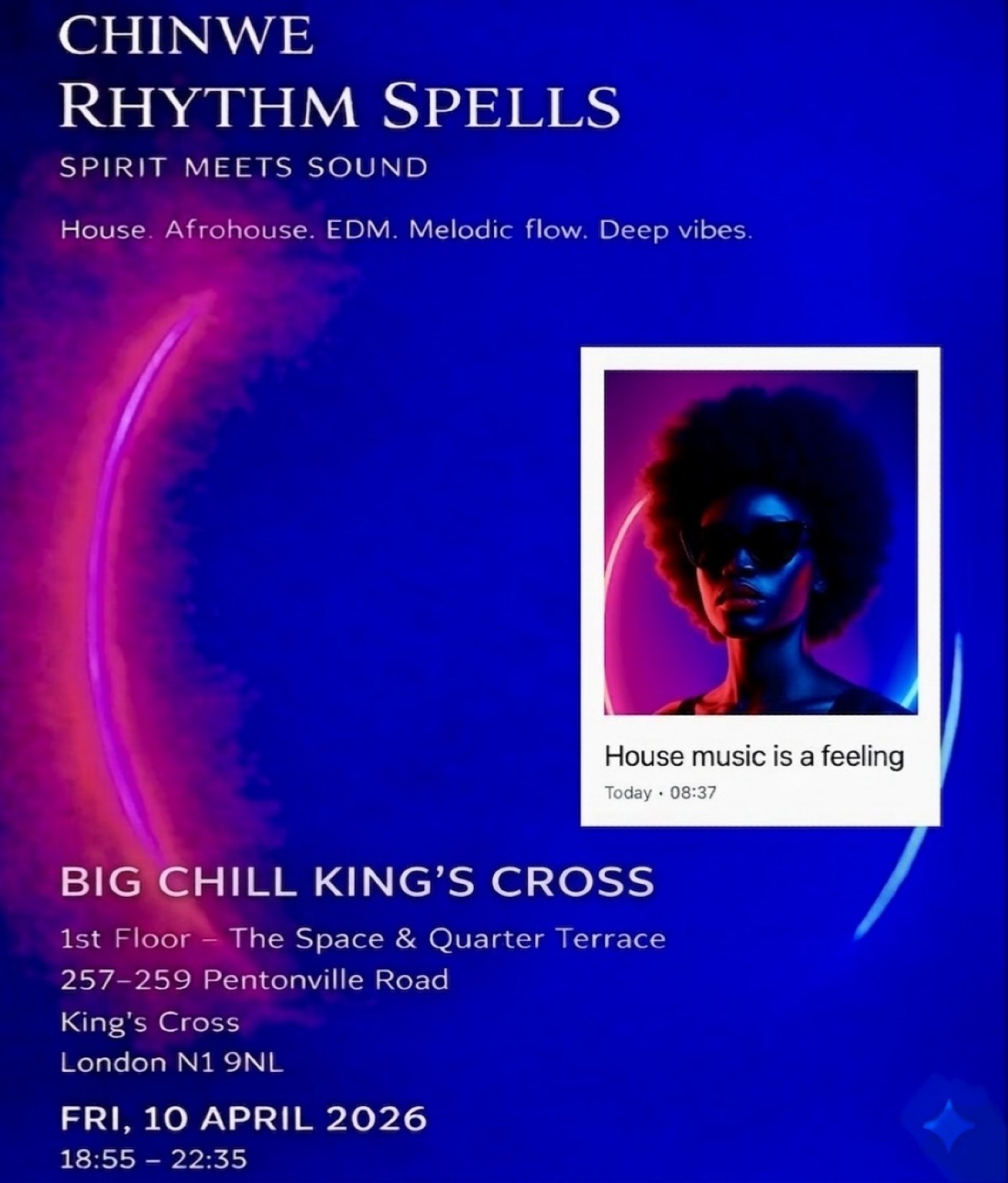 Rhythm Spells is a sonic experience where spirit meets sound, blending house music, afrohouse, melodic electronica and soulful global rhythms. Curated for dancers, feelers and true music lovers. Expect warmth, connection and a vibrant social atmosphere with music, cocktails and good energy.