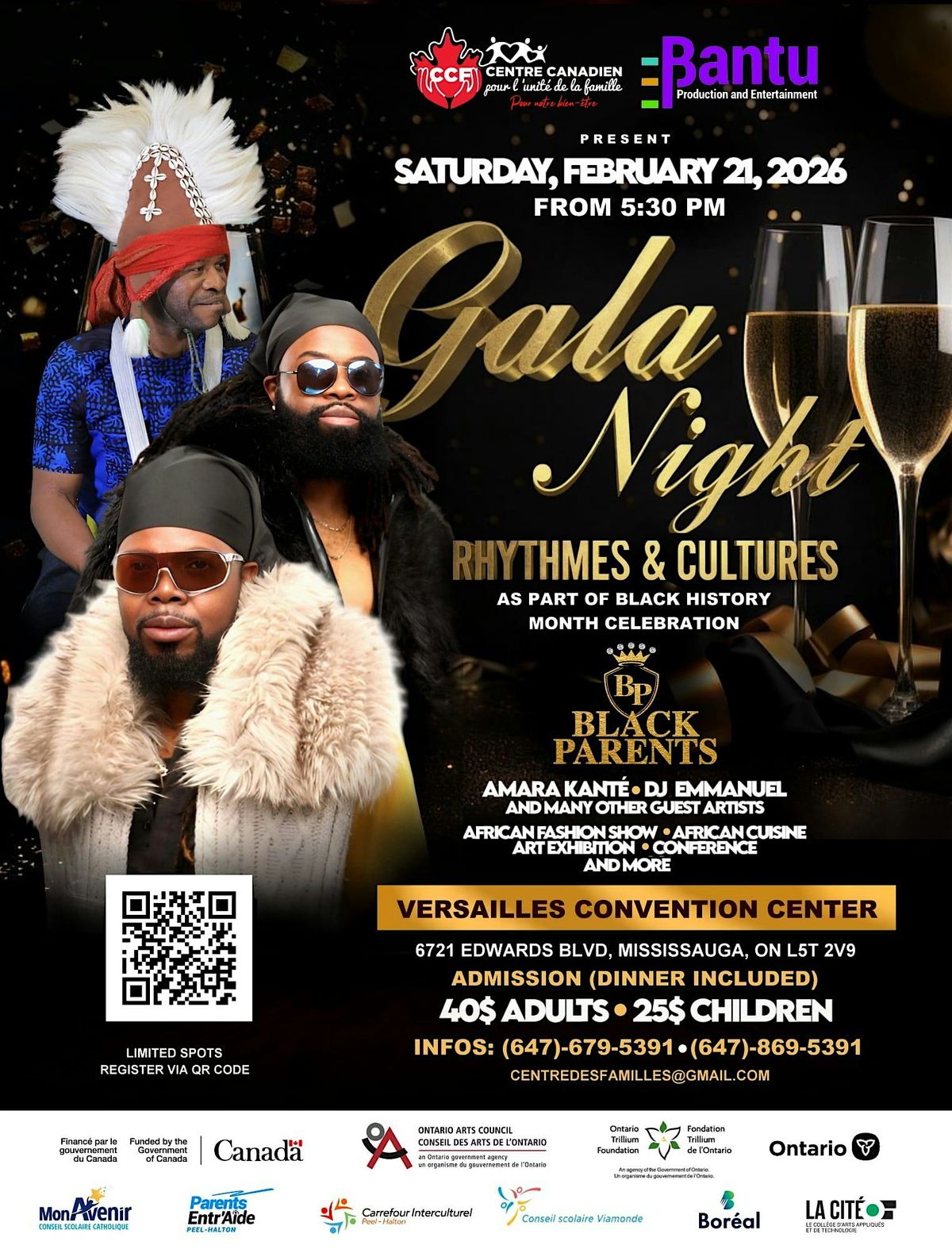 Le Centre canadien pour lβunitΓ© de la famille, in collaboration with Bantu Production Inc., invites you to a prestigious Gala Night, celebrating Afro-Caribbean cultures through music, art, fashion, and cuisine.