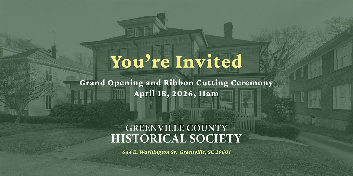 Join us April 18 from 11:00 a.m. to 1:00 p.m. for the Historical Society’s ribbon cutting and open house. Celebrate this exciting new chapter with a brief State of the Society talk, presentation of the Distinguished Historian Award, and a special proclamation. Guests will also enjoy guided tours of the house and archives, including a rare look at some of our most treasured artifacts, historic photographs, and important documents from Greenville’s rich past.