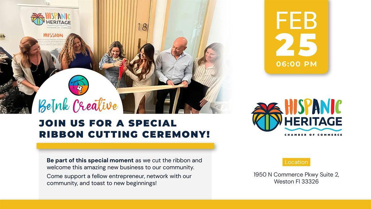 Join us on Feb 25 at 6:00 PM as we officially welcome Be Ink Creative to the community with a special Ribbon Cutting Ceremony hosted by the Hispanic Heritage Chamber of Commerce!