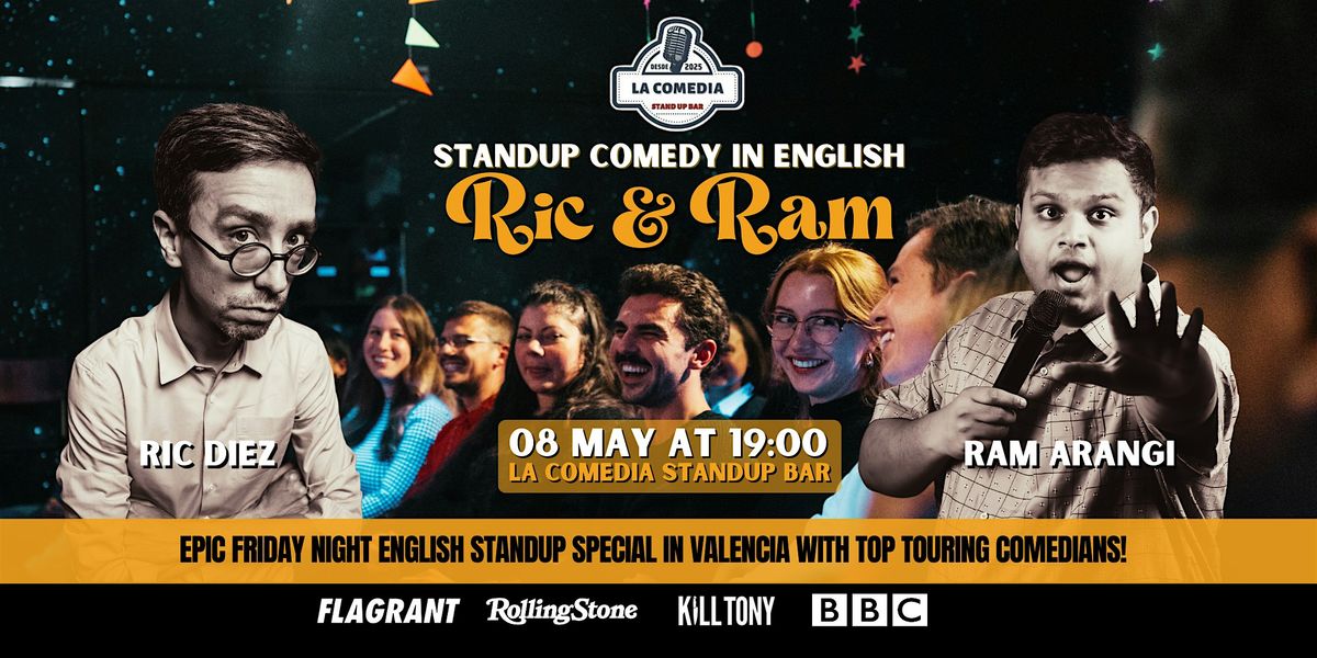 When two of Europe’s most electric comics share the same stage, expect chaos, chemistry, and comedy that hits from every angle. Ric Diez & Ram Arangi bring together razor-sharp punchlines, fearless crowd work, and stories that bounce from the ridiculous to the deeply relatable. This is stand-up that’s fast, unpredictable, and unapologetically funny — the kind of night you’ll still be quoting months later. One night only! Valencia is up for a real treat!