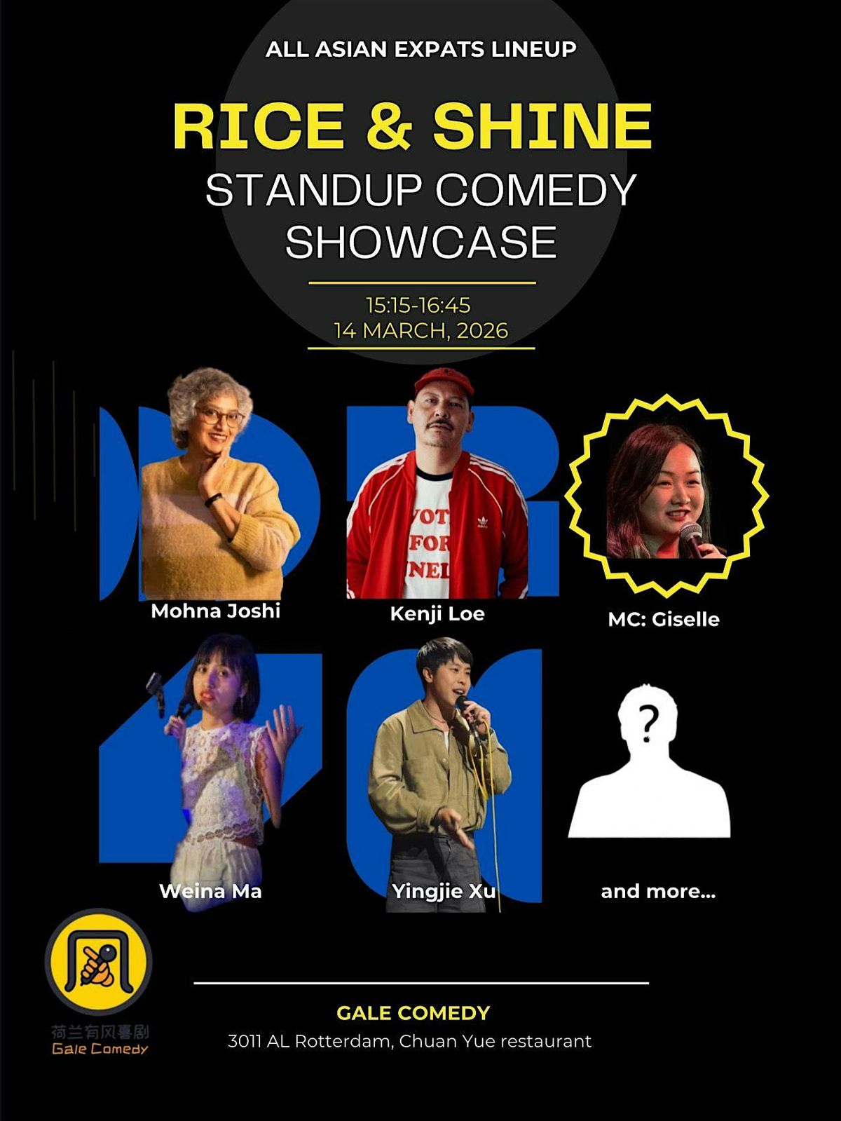 We’re bringing sharp punchlines, family trauma, cultural confusion, multilingual roasts, and the kind of funniness that only comes from disappointing our parents creatively, and the kind of stage presence that comes from surviving immigrants expectations. Shine bright like perfectly cooked rice, the food we were raised on; just like our jokes, the necessity we’re counting on to feed the room. Spread the word, bring your friends and family, buckle up, have fun!