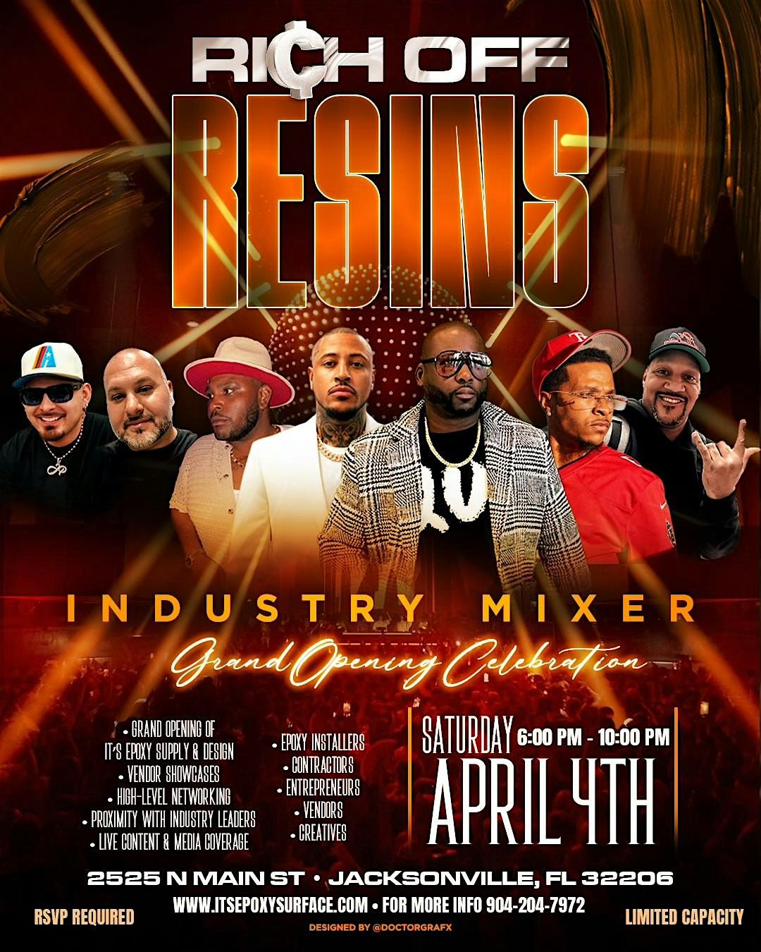 Join installers, business owners, suppliers, content creators, and serious entrepreneurs inside the new It’s Epoxy Supply & Design headquarters for a high-level networking experience designed to create real opportunity.