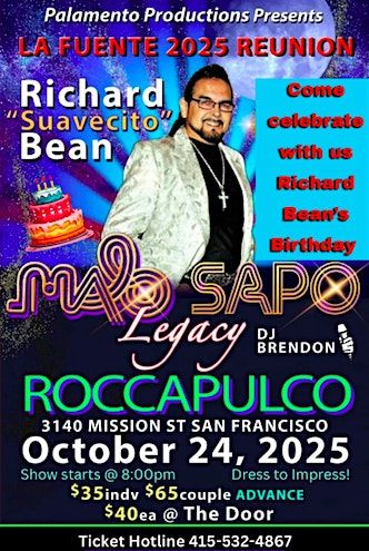 Richard "Suavecito" Bean "The MALO & SAPO" Legacy. DJ Brendon will spin Old School R & B and SALSA!Agenda