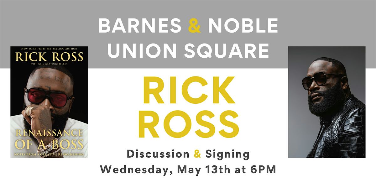 Join in New York City on Wednesday, May 13th at 6PM as we welcome rapper and music executive, , to celebrate his book, . Embark on the grand road trip adventure of iconic rapper and entrepreneur Rick Ross in this powerful guide, packed with his tools and secrets to staying inspired.