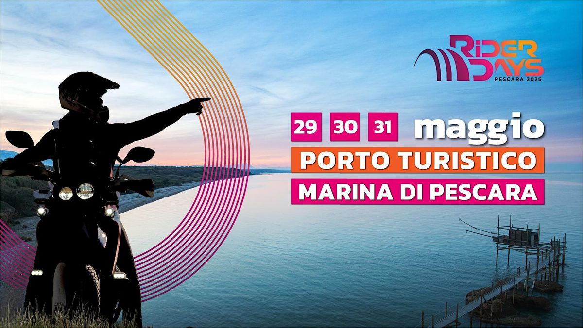 Dal 29 al 31 Maggio 2026 il Porto Turistico di Pescara diventa la Club House ufficiale dei RiderDays, il punto di partenza per esplorare le strade più belle dell'Abruzzo insieme ai nostri motoclub locali.