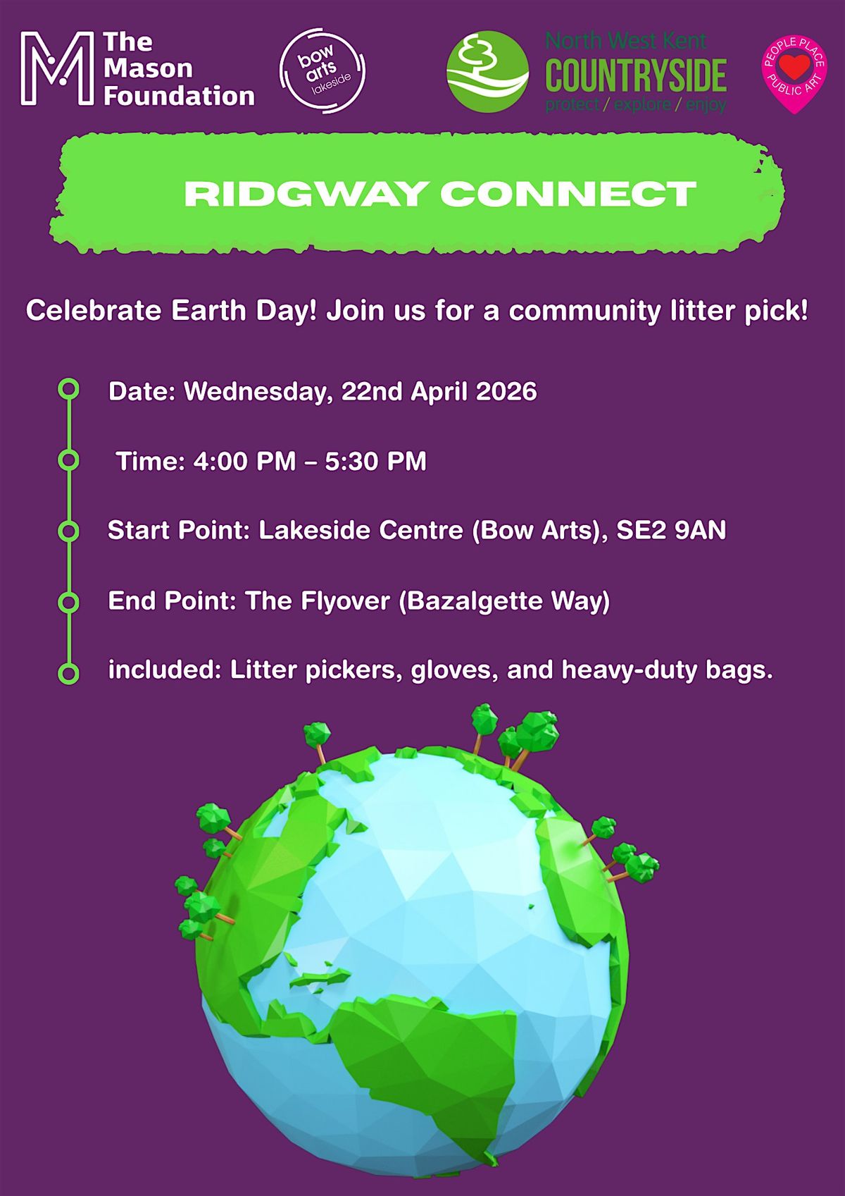 Bring your friends and family to help us make our community shine while enjoying a guide walk from Bow Arts to the Ridgeway flyover