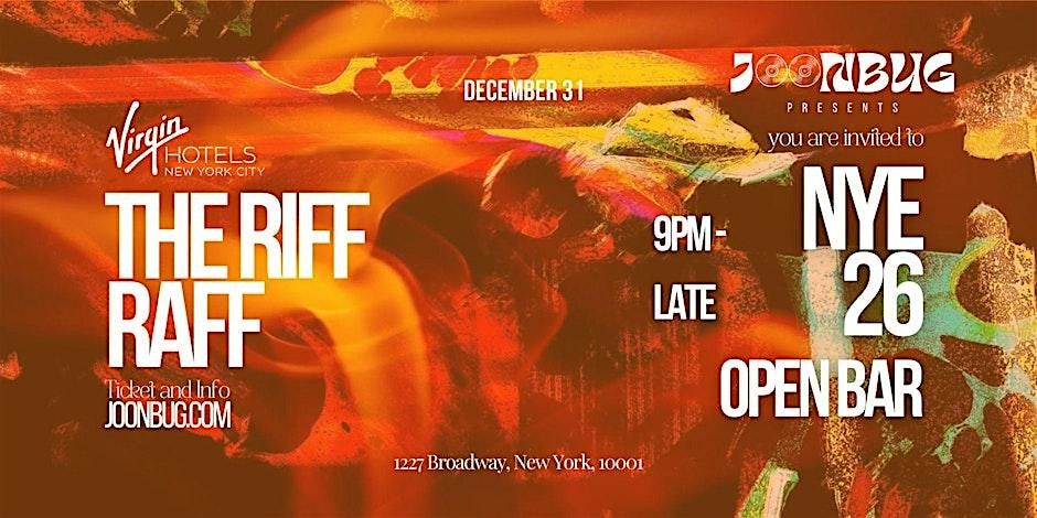 Step into NYE 26 with style and elevated energy at Riff Raff inside Virgin Hotels New York.