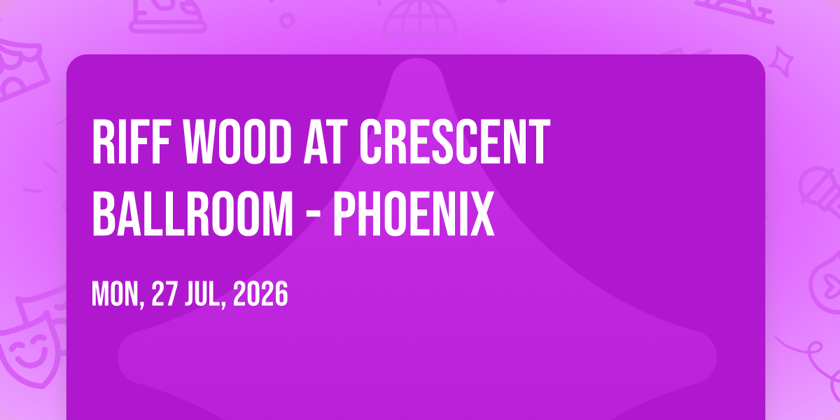 ✨ Embark on an extraordinary journey at Riff Wood at Crescent Ballroom - Phoenix, where every moment promises to be unforgettable! 🌟 Imagine of transforming Crescent Ballroom - Phoenix in the heart of Phoenix, AZ into a realm of endless possibilities. 📅 Join us on July 27th, 2026 at 07:30 PM for an experience that will challenge your imagination and exceed your expectations. 🎯 This carefully curated event combines the finest elements of entertainment, innovation, and community spirit. Whether you're an adventure seeker, culture enthusiast, or someone looking for unique experiences, this event offers something special for everyone. 🎊 Don't miss this chance to be part of something extraordinary!