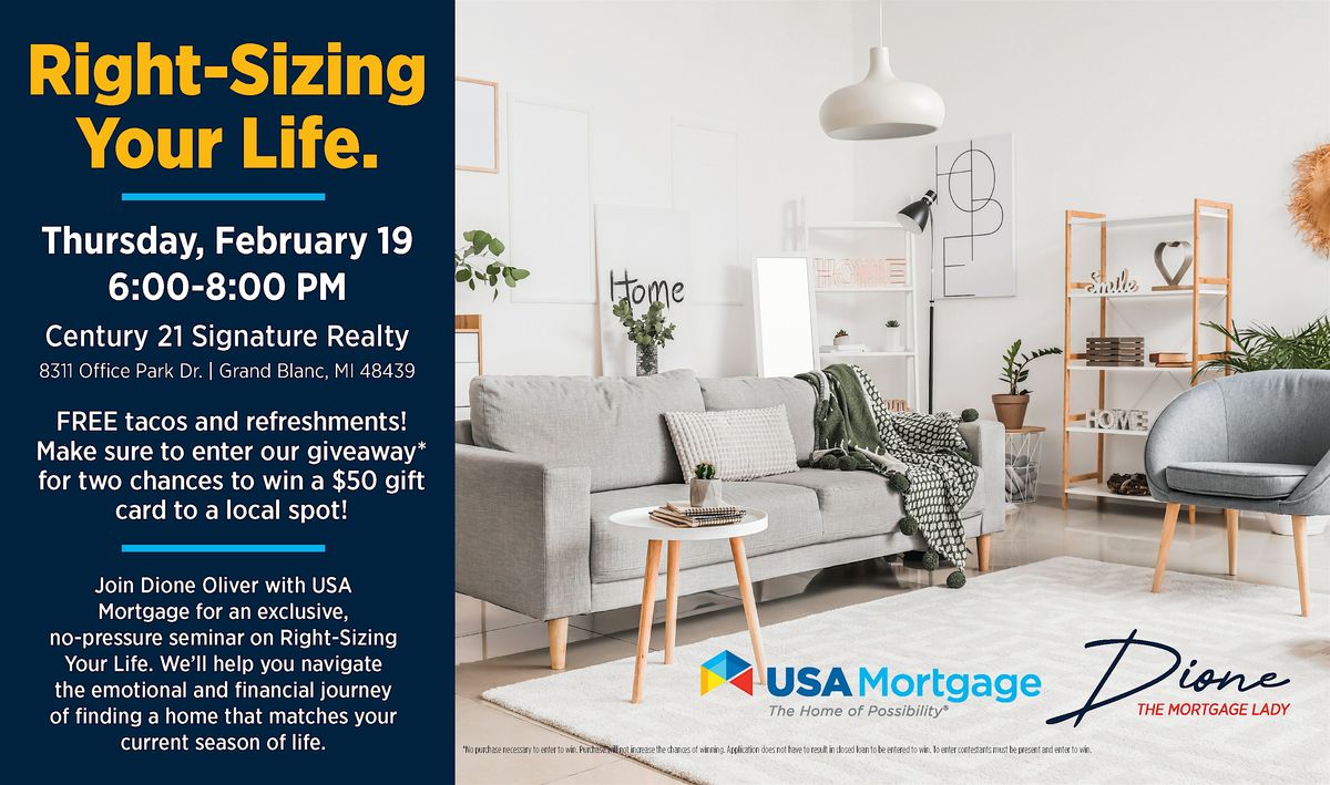 Join Century 21 Signature Realty and mortgage expert Dione Oliver with USA Mortgage for a free, no-pressure seminar designed to help you explore your next move with confidence.