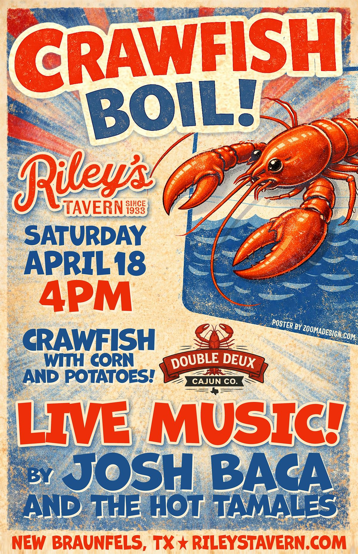Get ready to dig into a finger-lickin' good time at Riley's Crawfish Boil. This in-person event is all about great food, awesome company, and some serious shell-cracking fun. Bring your appetite and a few friends for a laid-back day filled with spicy crawfish, cold drinks, and good vibes. Can’t wait to see you there!