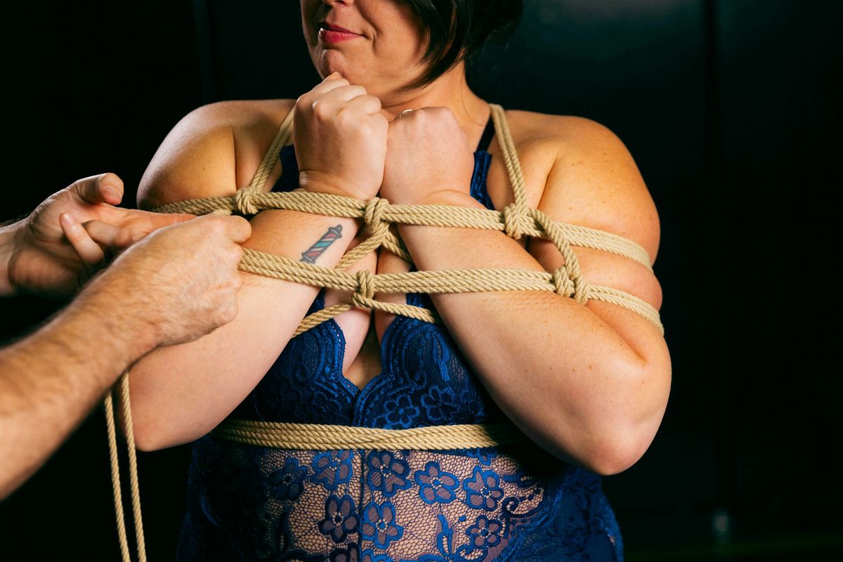 We'll discuss the different reasons we like restraining the arms and how to evoke those particular feelings in a tie. Then we will work through several arm ties as a class with a focus on different arm/shoulder positions so you can explore what is most suitable for your body. Most of the ties will be floor suitable with the potential to use uplines to create tension on the tie.
