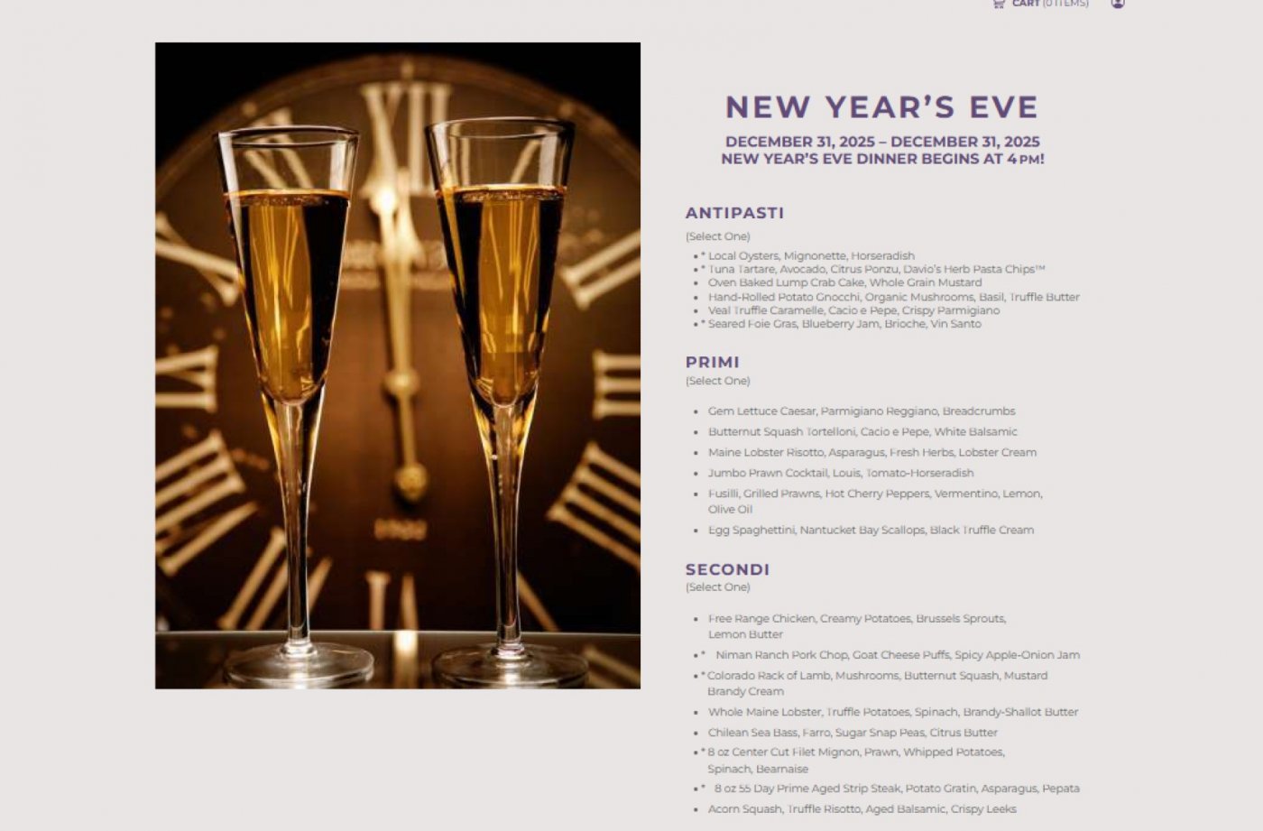 Please note: Davio’s standard dinner menu will not be available on New Year’s Eve.