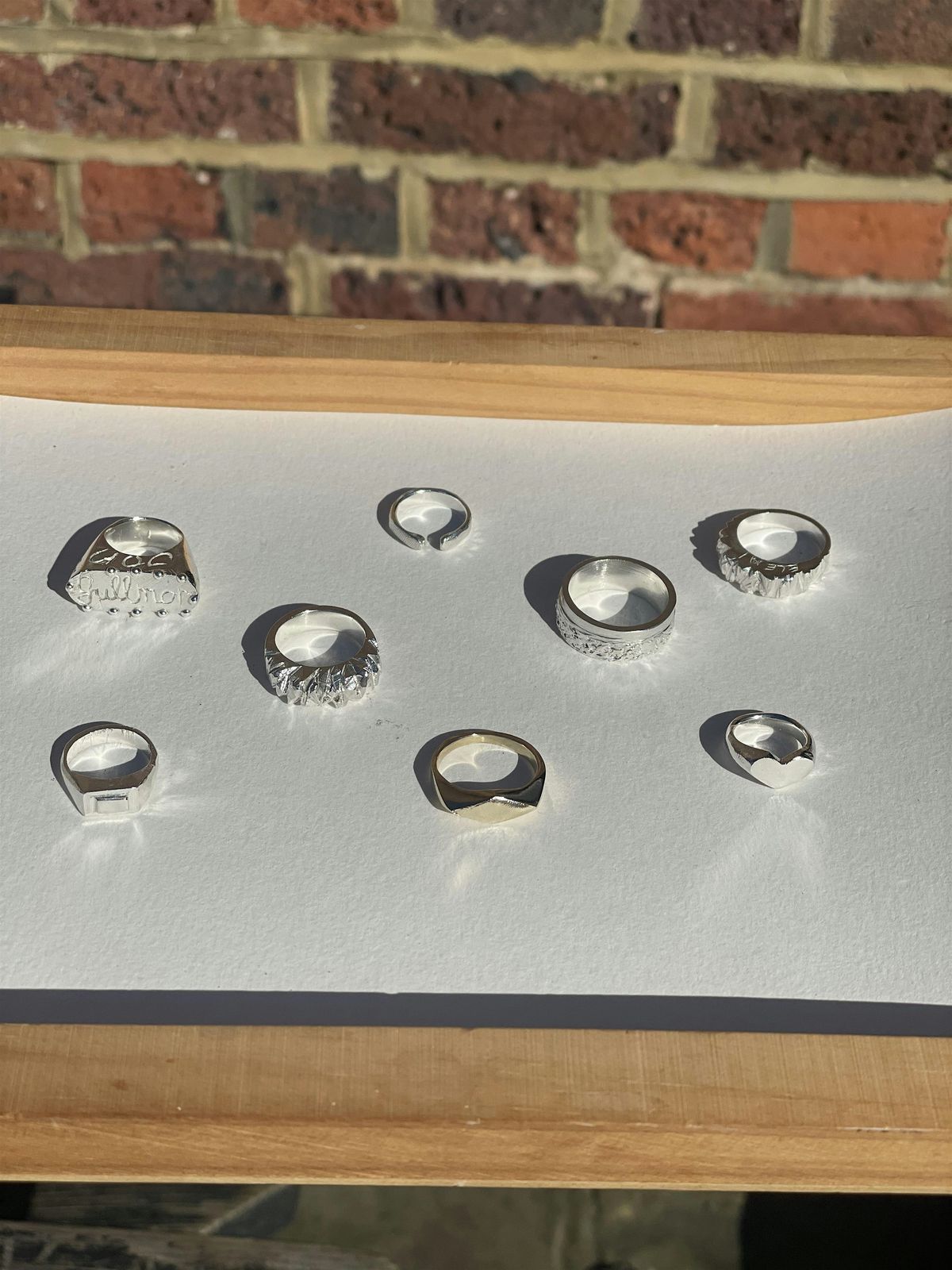 After the class the rings are then sent and cast in 100% recycled silver ( or recycled gold if desired, cost difference will be explained) Once cast, Mollie will polish them up in her workshop in Lewes and returned within 3-4 weeks either by collection from FLUX or post to your door. All levels and abilities are welcome.