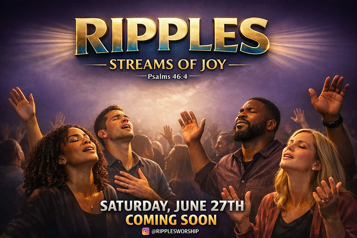 RIPPLES: Streams of Joy is a worship gathering designed to refresh, revive, and realign hearts with the presence of God. This is a night for believers to come together in deep worship, prophetic word, and heartfelt prayer — a space where joy flows, faith rises, and lives are transformed.