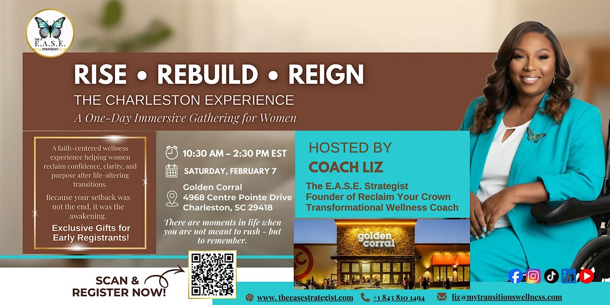 Rise, Rebuild, Reign is a faith-centered experience helping women reclaim confidence, clarity, and purpose after life’s storms.