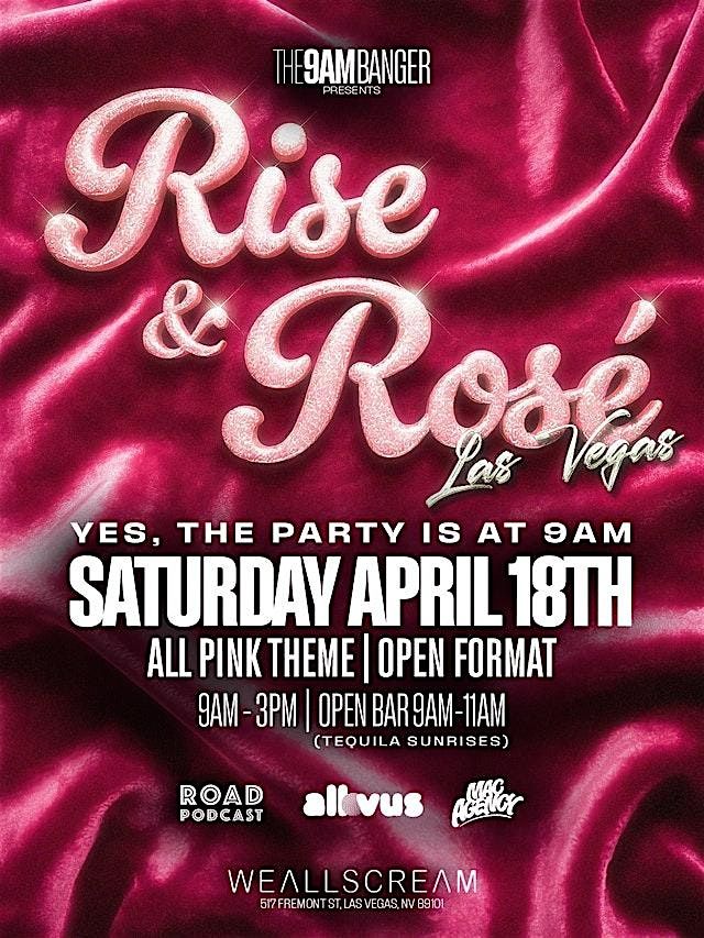 The GREATEST pink morning party is hitting Sin City! 9am Banger Rise and Rose: Las Vegas! Enjoy Pink outfits, 2 Hour Open Bar and EPIC Music