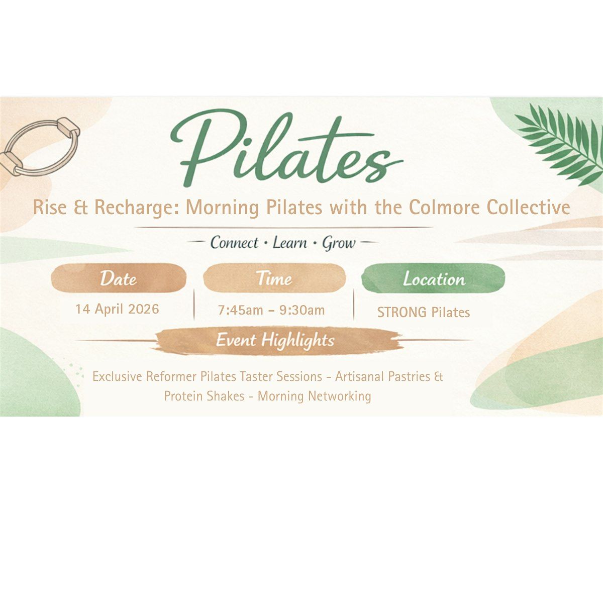 - 8:00 - 9:30 | Reformer Pilates taster sessions & breakfast networking