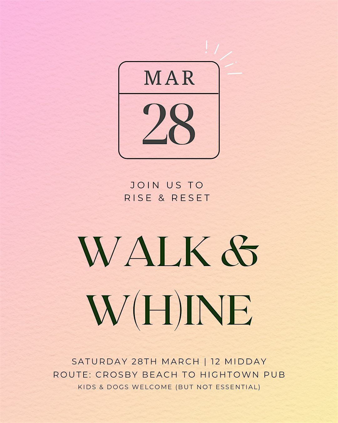 Ready to shake off the week? Join us for a Walk & W(h)ine, a fab way to relax and recharge! This in-person event blends a refreshing walk along the Hightown path, with a well-deserved drink of choice at the pub (wine worked for the title, but you can have a soft drink - we don't judge). Then you can either jump the train back or walk it - entirely up to you!