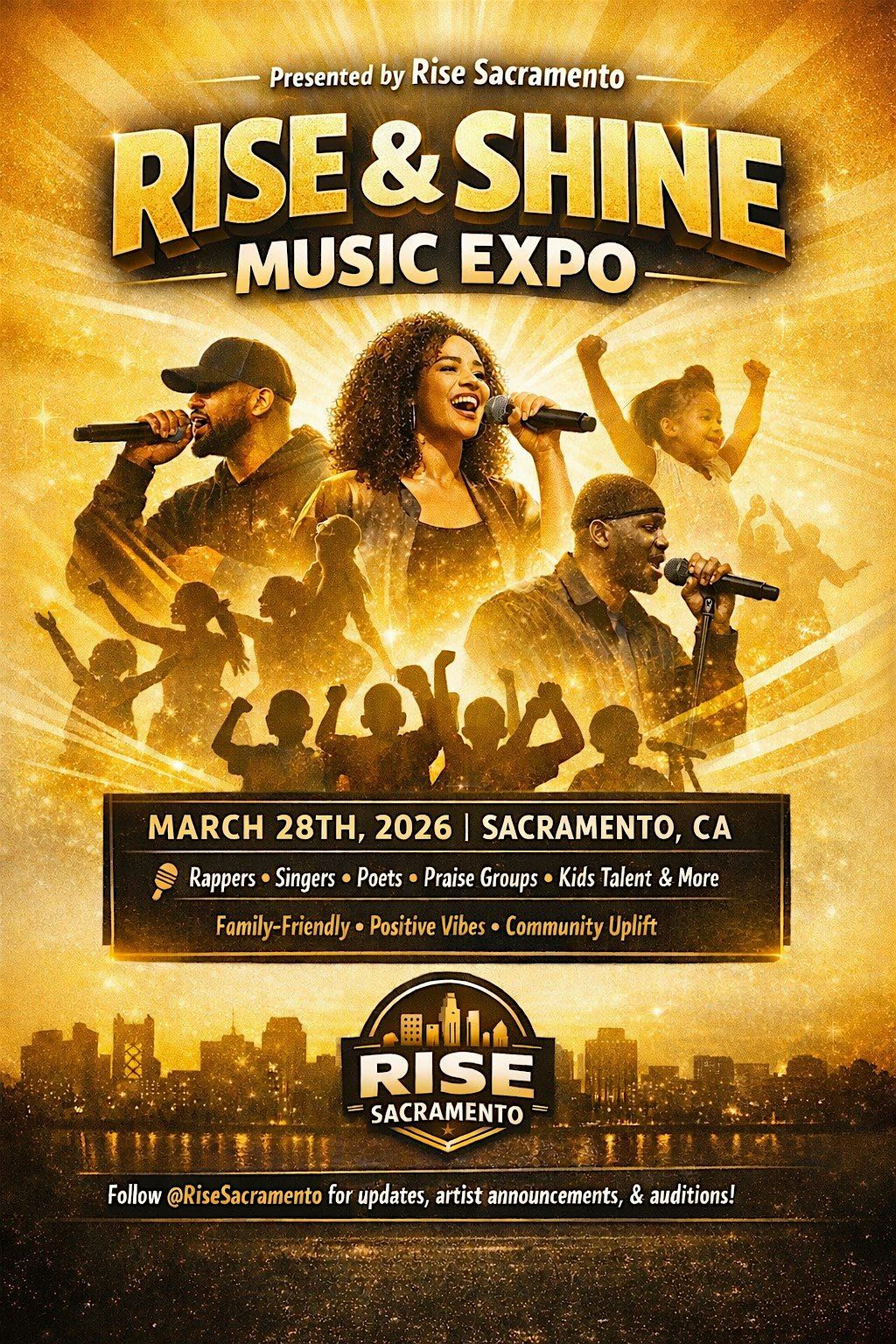 The Rise & Shine Music Expo is a family-friendly, faith-forward music experience created to uplift the community and spotlight powerful talent from all ages and backgrounds.Presented by Rise Sacramento, this event brings together rappers, singers, poets, praise groups, and kidsโ talent on one stage for a night of inspiration, creativity, and positive energy.This is more than a concert itโs a movement of hope, purpose, and unity.