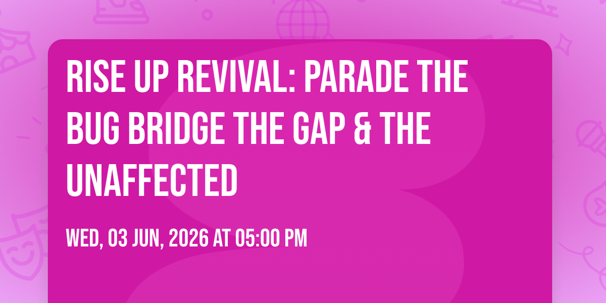 🌟 Step into a world of wonder at Rise Up Revival: Parade The Bug Bridge The Gap & The Unaffected, where extraordinary moments await! 🏛️ Located at Metro Music Hall in dynamic Salt Lake City, UT, this event will become the talk of the town. 📅 Join us on June 3rd, 2026 at 05:00 PM for a celebration that defies the ordinary. ✨ This curated experience brings together the best of entertainment, culture, and community spirit. Every detail has been thoughtfully planned to ensure an unforgettable experience for all our guests. 🎯 Take advantage of this opportunity to be part of something special. 🎊 Early registration is recommended as space is limited!http://maps.seatics.com/GeneralAdmissionEvent_2018-10-03_1713_SVGC_tn.gif