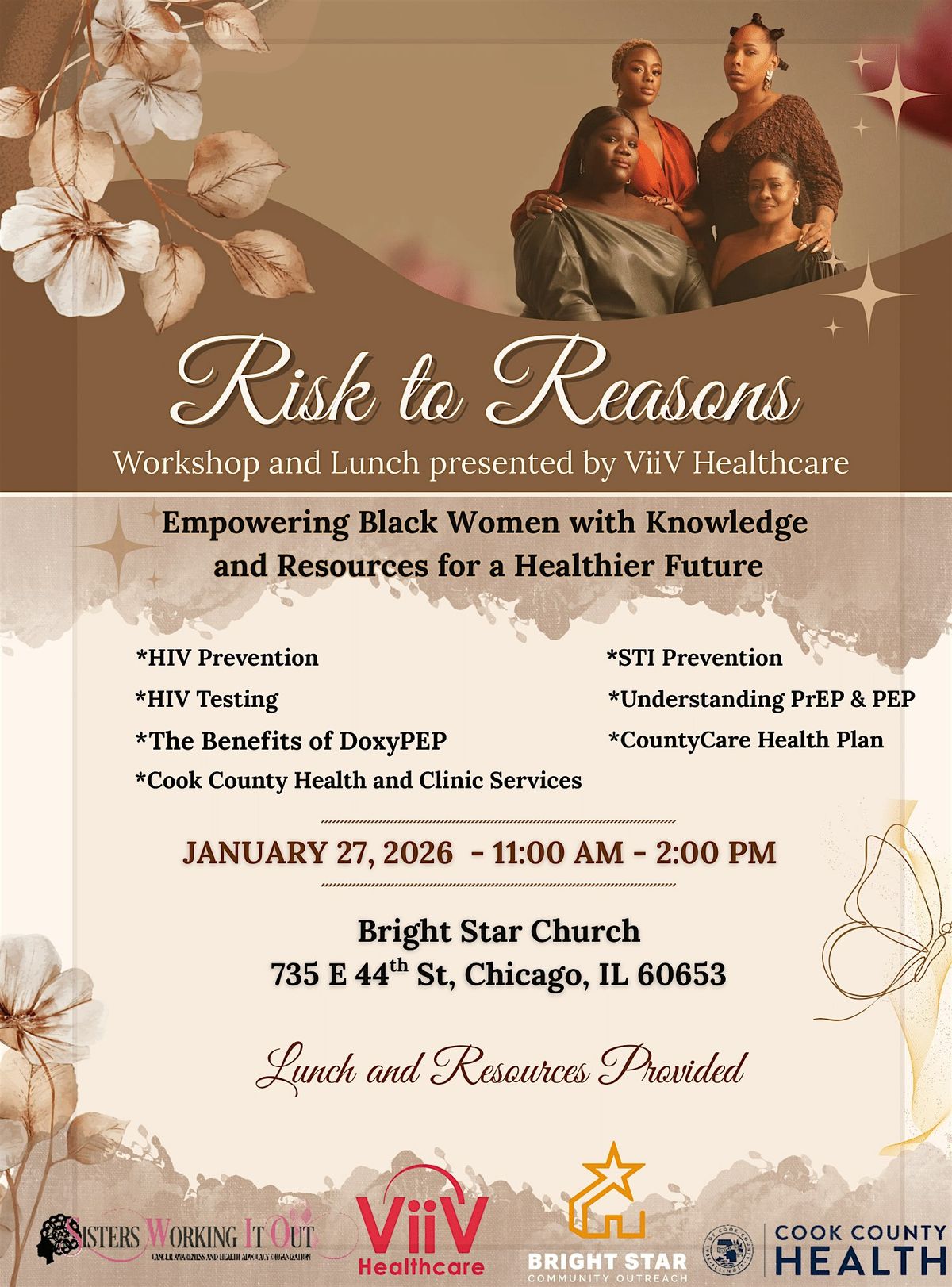 Join us for an empowering women’s health luncheon for Black women, in partnership with Cook County Health and ViiV Healthcare.