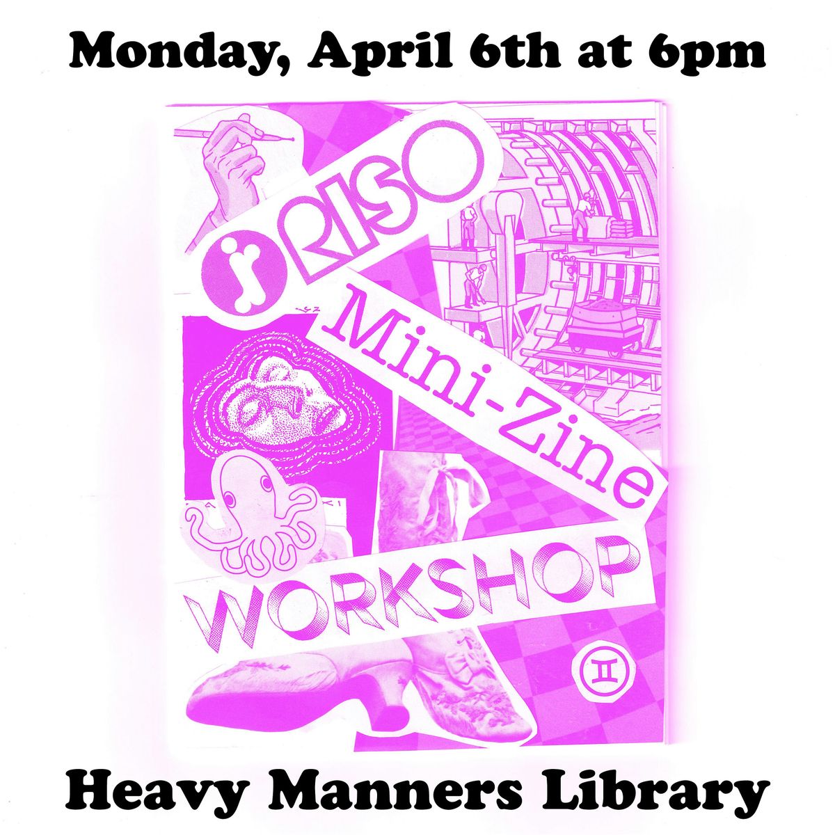Join us for an introductory workshop on risograph printing. Students will learn the basics of our risograph machine (an RZ390) and will have a chance to experiment with making their own Mini-Zine. Part of the class time will be dedicated to examining the ins-and-outs of the machine, and part of the class will offer time for students to make their own zine using a single 11x17 sheet of paper folded down to a 6 page zine. If you have files on your computer that you would like to experiment with, or if you want to make work on your computer or ipad to print, those are both options as well! But please understand with the class size and limitations of our machine that we can not guarantee that students will leave with exactly the print they envision if their concept is more ambitious than the class is designed for.