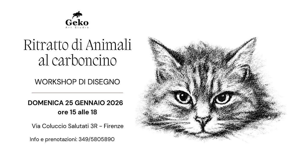 Se ami gli animali e vuoi imparare a ritrarli con il carboncino, questo workshop è perfetto per te! Vieni a scoprire le tecniche base e avanzate del disegno dal vivo, in un ambiente rilassato e creativo. Porta il tuo entusiasmo e lascia spazio alla tua fantasia!
