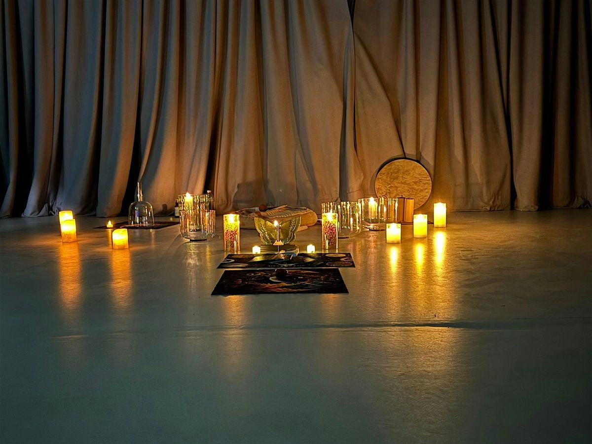 From there, you'll be guided into a deep sound bath, lying down and fully held, as layers of sound move through you. The instruments used; crystal singing bowls, tuning forks, a full moon hand-beaten bowl and koshi chimes - work together to shift the nervous system out of stress and into genuine rest, drawing on frequencies that settle the mind and reach the body at a cellular level.