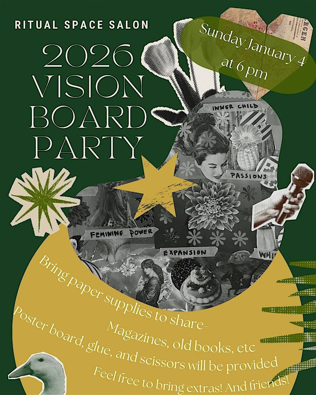 Ring in the new year and set some intentions for 2026 at our very first vision board party!!! We will have poster board, glue,scissors, and some paper products but feel free to bring any extra magazines, books, or supplies that you like! We will also have snacks and beverages to keep you fueled while you craft. We hope to see yall there!
