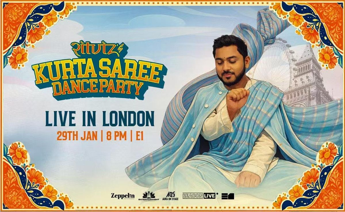 London, it’s time to dress up to get down. Ritviz brings his brand-new club IP, 'Kurta Saree Dance Party,' to the iconic E1 Nightclub for its world premiere.This isn't just a gig; it’s a playful exploration of duality. We’re merging the soul of Hindustani classical music with the grit of the London underground. Think heavy bass, tabla rhythms, and a dance floor draped in tradition.