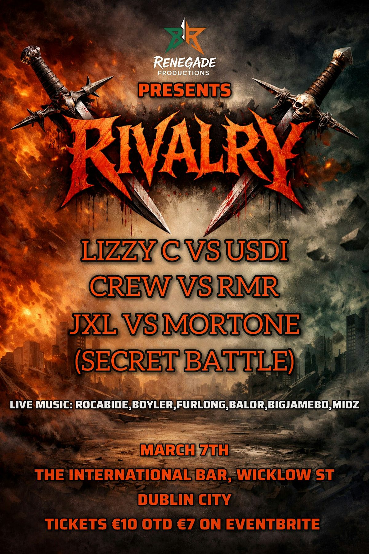 LOOKING FOR A LAUGH?RENEGADE PRODUCTIONS ARE BRINGING BATTLERAP BACK! LIVE MUSIC FROM SOME OF OUR BEST IN THE SCENE AND 4 LIVE RAP BATTLES