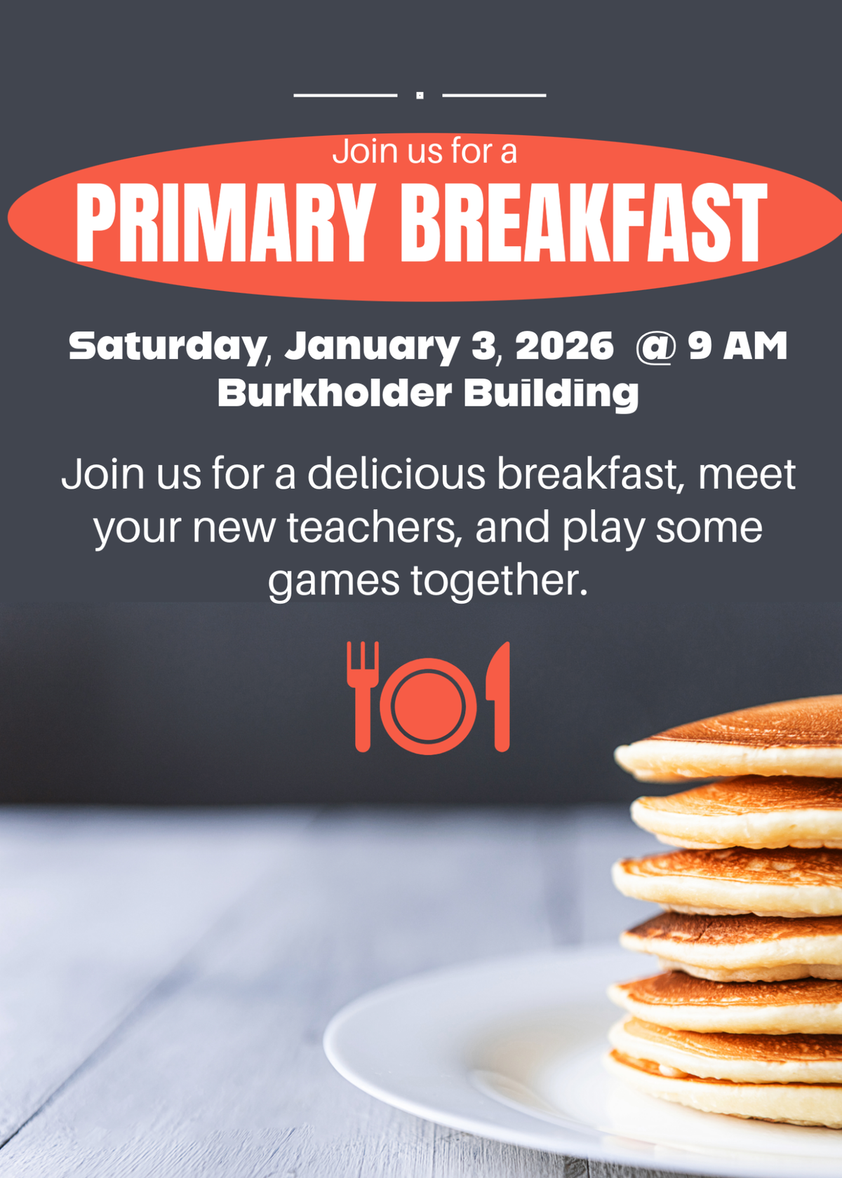 Join your primary class to have breakfast, meet your new teachers, and play some games!