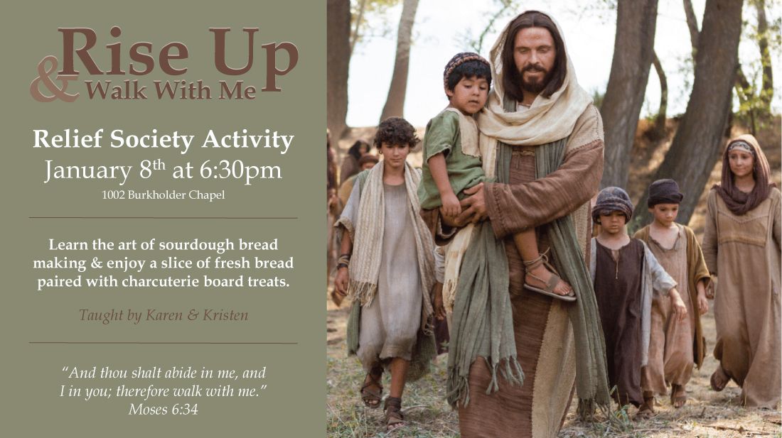 We invite all Young Women girls (ages 11 to 18) to join our River Mountain Ward Relief Society sisters (women ages 18 and above) in an evening of instruction in the skill and knowledge of making sourdough bread . Enjoy samples of the bread with charcuterie board treats. No nursery will be provided. Please make other arrangements for younger children. We hope to see you there.