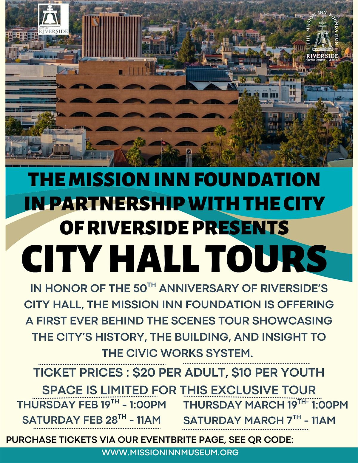 In honor of the 50th anniversary of riverside’s city hall, The mission inn foundation is offering a first ever behind the scenes tour showcasing the city’s history, the building, and insight to the civic works system.