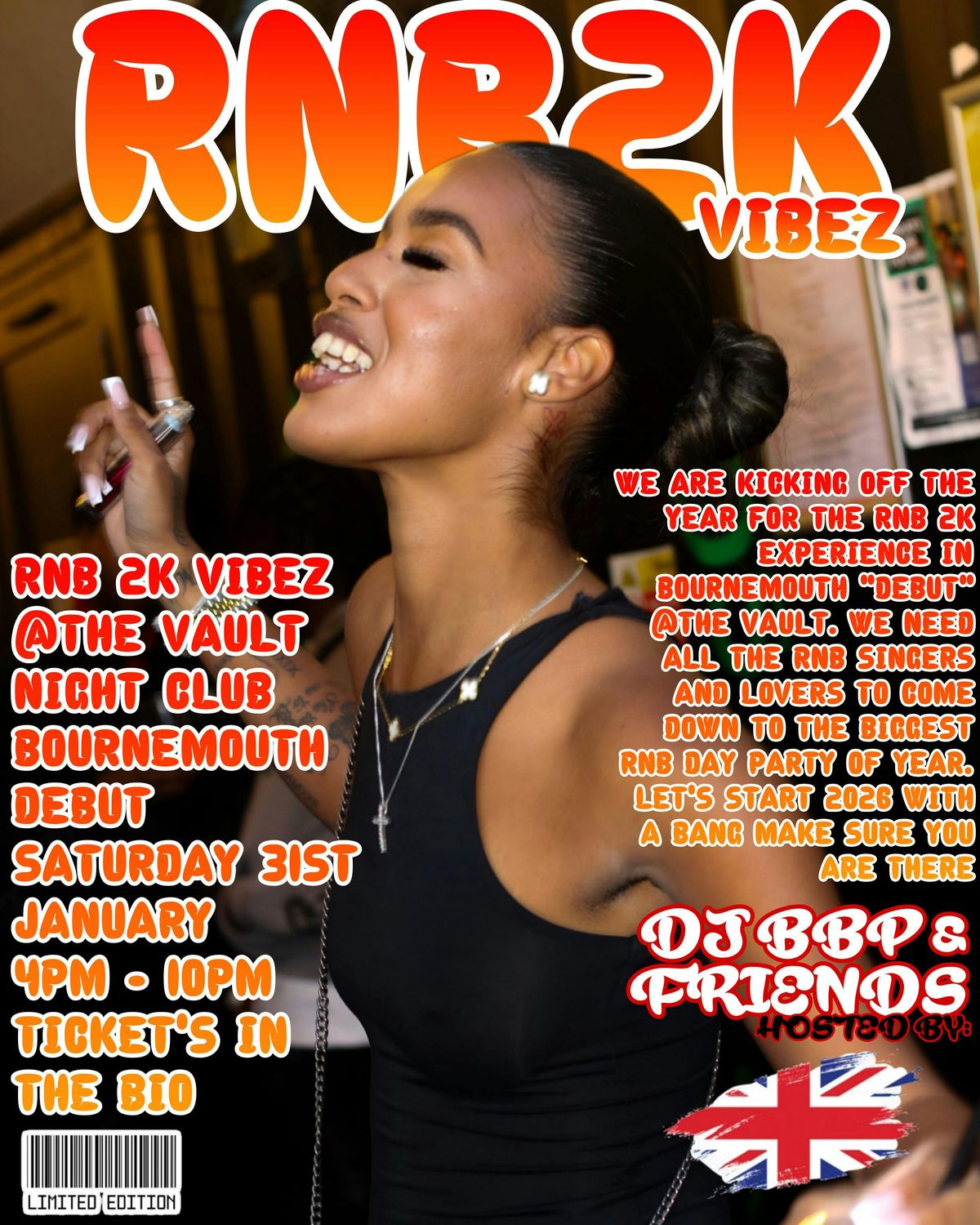 ​BOURNEMOUTH! The 2K Vibez are finally pulling up for our city debut! We are kicking off the year with the RNB 2K Experience at The Vault Night Club, and we need all the R&B singers and lovers to show up! Get ready for the biggest R&B day party of the year—let’s start 2026 with a bang!