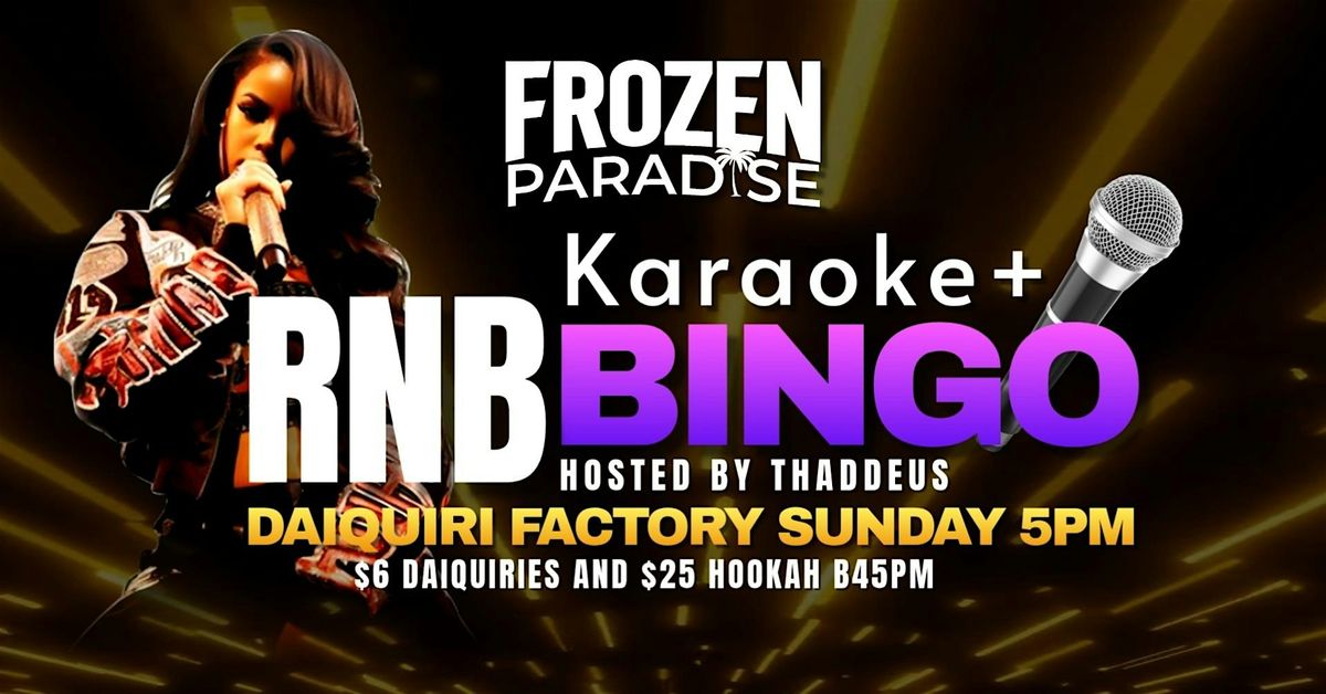 RNB Bingo + Karaoke Hosted by Thaddeus!! $25 Hookah $6 DAIQUIRIES B45PMAbout this Event